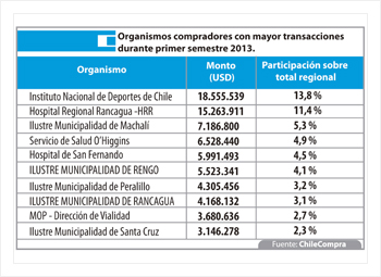 El diario El Libertador de Rancagua publicó un reportaje con las cifras de compras públicas en la región durante el primer semestre del año 2013, al tiempo que también destaca los organismos con mayor cantidad de órdenes de compra en el periodo.