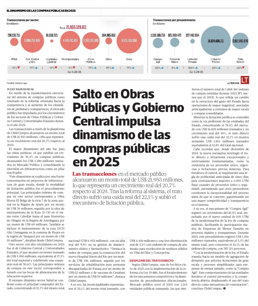 Durante el año 2025, el sistema de compras públicas de Chile experimentó una transformación estructural como resultado de la reforma a la Ley 19.886 orientada hacia la competencia y al aumento de los estándares de probidad y transparencia.
