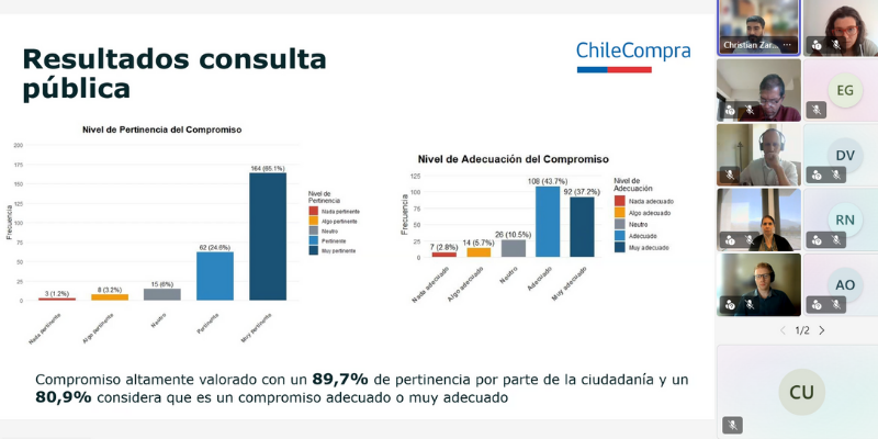 Al respecto mencionó que los resultados de la consulta muestran que la ciudadanía percibe el compromiso de datos abiertos en compras públicas, pues del total de personas participantes, casi el 90% los considera pertinente o muy pertinentes, “algo que evidencia una valoración positiva y respaldo a la iniciativa”.