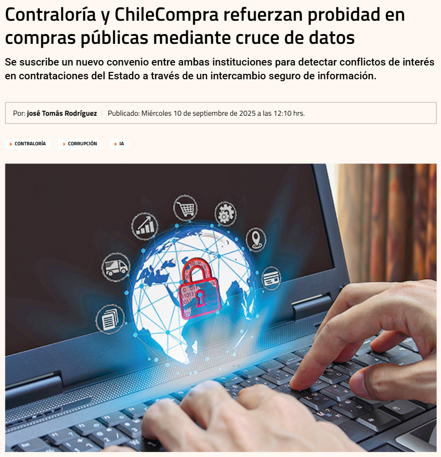 Con este convenio, la Contraloría General de la República y ChileCompra reafirman su compromiso con el uso eficiente y probo de los recursos públicos, en beneficio directo de la ciudadanía. Asimismo, esta iniciativa da cumplimiento a la medida N°73 de la Estrategia Nacional de Integridad Pública (ENIP), que busca impulsar la interoperabilidad de datos entre instituciones del Estado para detectar, alertar y prevenir oportunamente conflictos de interés en los procesos de contratación pública.