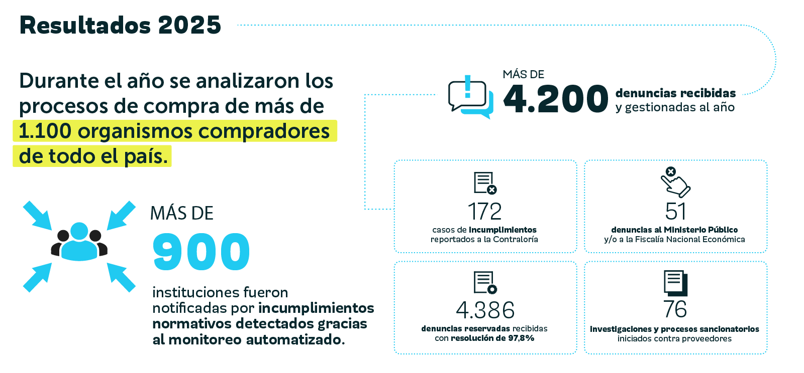 Herramienta que analiza la totalidad de los procesos de compra publicados en Mercado Público, detectando eventuales incumplimientos normativos y alertando a los organismos públicos para su corrección y respuesta.